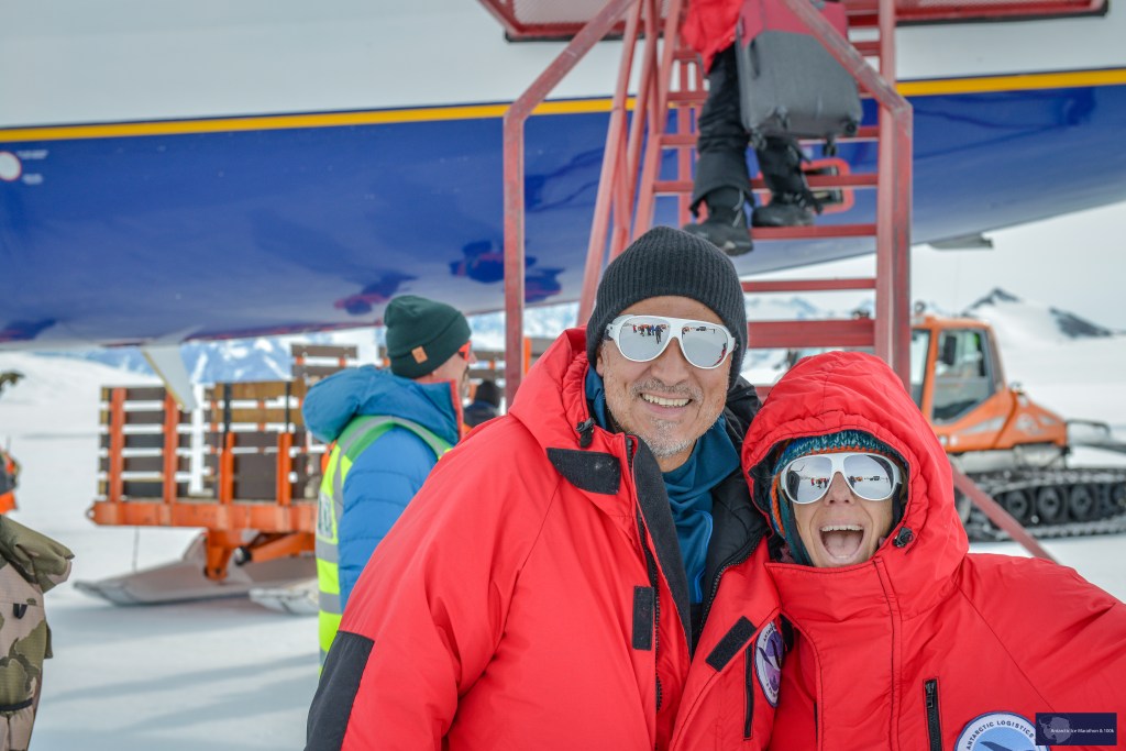 Saturday Morning we received the final notice. Be ready by 11:00a, air travel is confirmed. Finally after three years of waiting the day arrived when we would be traveling to the continent. We would leave Punta Arenas from the international airport, going thru security and all, on a charted flight commissioned by the Antarctic Logistics Expedition company and operated by Icelandic Airlines. We would be flying on a big 757 plane. Each passenger would need to bring their big unruly package of Cold Gear clothes and boots to change into before deplaning. The temperature on the plane was lowered an hour before arrival so we could change into Cold Gear without baking. The flight would take a little over four hours, flying over the South Sea, over the Antarctic Peninsula and finally arriving to our destination at Union Glacier. The views as the plane crossed the coastline were spectacular. Ice and rock, a pristine and endless view of ice covered mountain ranges. Like landing on a different planet. Union Glacier does not have an airport, it does have however a solid blue ice area long enough for a big plane to land in as a runway. Before the use of commercial 757s large Military planes would land here for the set up and supply of the Union Glacier camp. The Blue Ice Runway is smooth, tho not smooth like applied asphalt. The landing felt a little rough, expected, and resulted in a round of applause for the pilot. We avoided sliding on the slippery ice, after all.