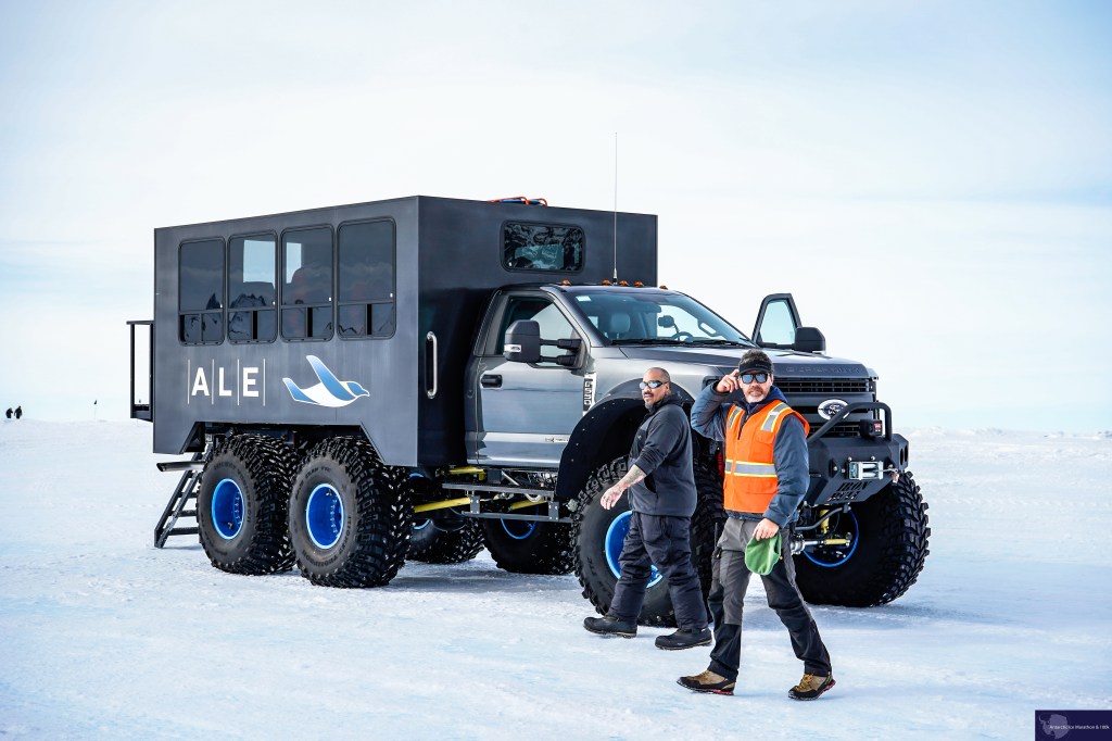 The Antarctic Ice Marathon is possible because a place like Union Glacier Camp exist. There is another race that happens on the coast of Antarctica, however it arrives in and out by boat . The Antarctic Ice Marathon is the only race that happens in an area so remote that it can only be accessed by air. The camp is located a couple hundred miles from the magnetic South Pole in the Ellsworth Mountains in a large expanse of ice that is an active glacier, the Union Glacier. ALE manages the camp and the Blue Ice Runway operating during the Antarctic summer, November thru January. Off the plane the very first thing one sees is the slippery and naturally occurring Blue Ice Runway. We landed around 4:00pm, after a few minutes of a heightened celebration state we were shuttled on massive ATV vehicles to camp. It is a short five minute ride with the beautiful Ellsworth mountains surrounding the Glacier.