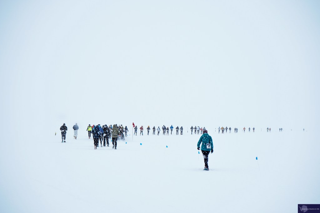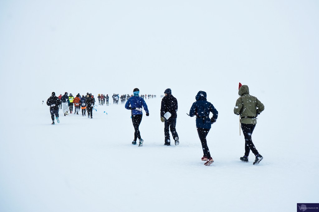 After the briefing we were instructed to be ready for a trial run at 8:30pm. We were asked to wear exactly what we planned to wear on race day, including race numbers. There were two reasons for the trial run, first it would allow the race organizers to take photos and video in a more controlled environment, and second and most important it would allow runners to try the gear and determine what changes should be made if at all. The two mile trial run gave everyone a preview of the experience and also I believe a boost of confidence in their gear and preparation. Our friend Gary had recommended to wear fewer layers and start the race cold, warm up running and only then decide if additional layers would be needed. I didn’t follow his advice for the trial run and started with a cozy layer under my top shell jacket that was beautifully warm. At the end of two miles the same layer became awfully wet from sweat and uncomfortable. I should have listened to Gary’s advice as he was spot on. Kristi also had changes to her trial gear. She had planned to run with her trail shoes to which she was perfectly adjusted to and comfortable. Those shoes, however were too thin and light for the mushy snow terrain. The trail shoes were also not waterproof enough and could lead to wet and cold feet. She would be changing the next day to a pair of heavier fully waterproof hiking shoes that would keep her feet dry. The risk here was that she hadn’t run many miles on these thicker shoes that were designed for hiking. Unfortunately it became a question mark that would be answered on race day. We were glad to have had the trial run and the gear to feel ready for the race. We went back to our tent and as we always do before a race, laid out the exact gear we would be wearing, set an alarm and slept a few good hours.